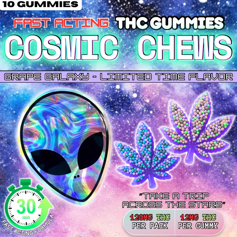 2x Cosmic Chews Fast-Acting THC Gummies – Each Pack Contains (10x) 12mg THC Gummies